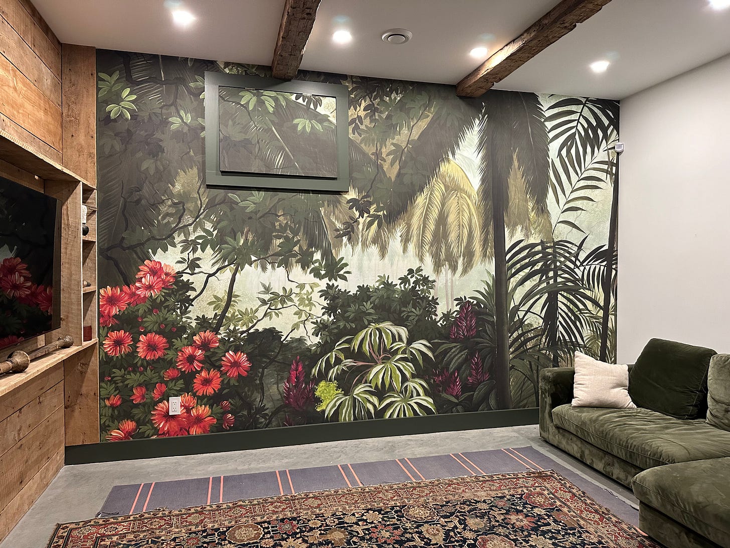 When we moved back to Canada at the start of the pandemic we were desperate to replicate this sensation. We filled the house with planted palms, a towering ficus tree, and sprawling monstera deliciosa (also deliciously known as the Swiss cheese plant). This greenery provided a measure of tropical relief, but we wanted more. After some digging around I discovered Ananbo, a French company that creates extraordinary wall murals of exotic, verdant scenes—wonderfully transportive landscapes that drop you in the middle of the jungle or on the banks of the Mekong.